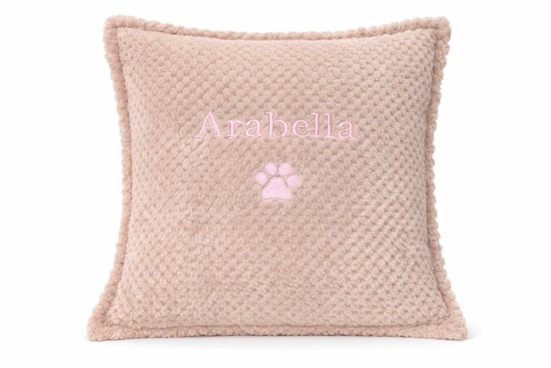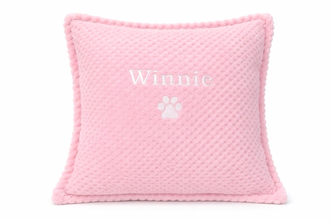 Give your pet a cosy place to relax with this beautifully crafted embroidered waffle cushion.