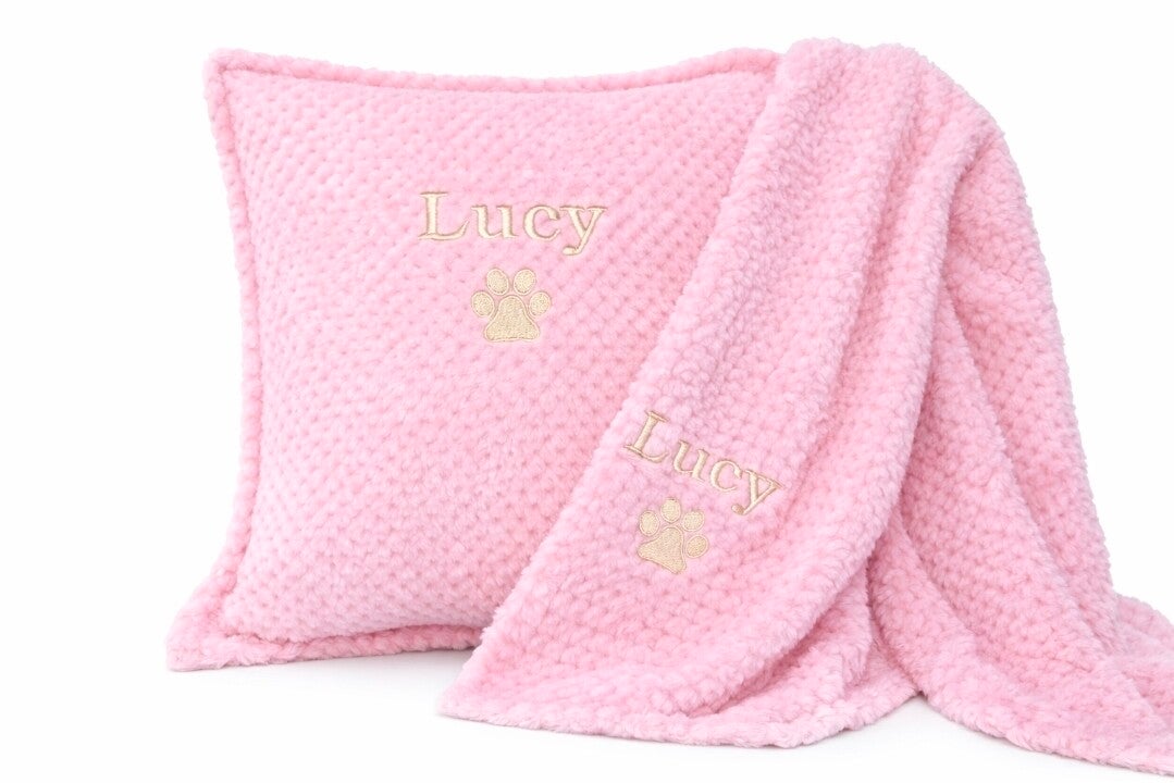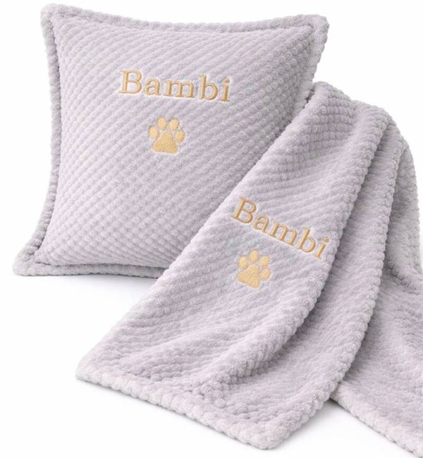 Personalised Waffle Pet Cushion & Blanket Set